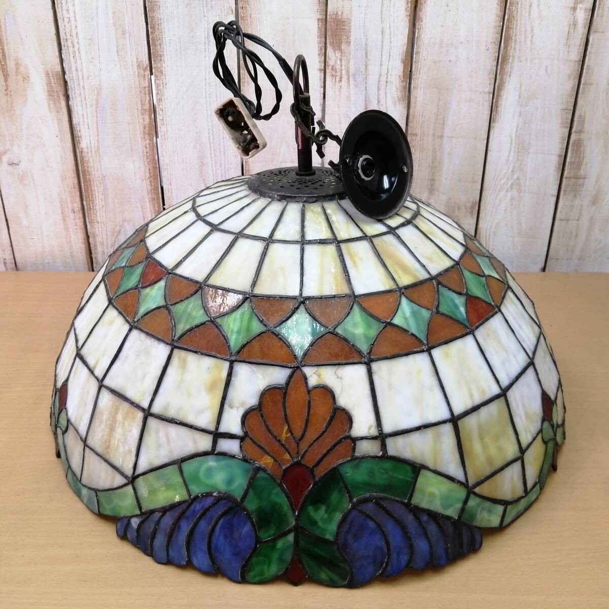 - ■25021503 ステンドグラス 吊り下げ 天井照明 ペンダントライト 直径約49cm 高さ約23cm インテリア照明 ランプ アンティーク