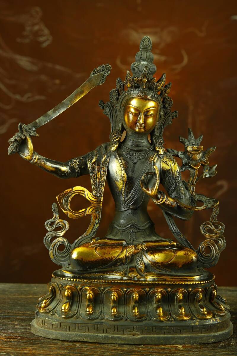- 『清・仏教古美術・古銅彫・文殊菩薩・文案置物・密宗密教・供養品』極細工・時代物・東洋彫刻・古賞物・中国古玩・中国古美術