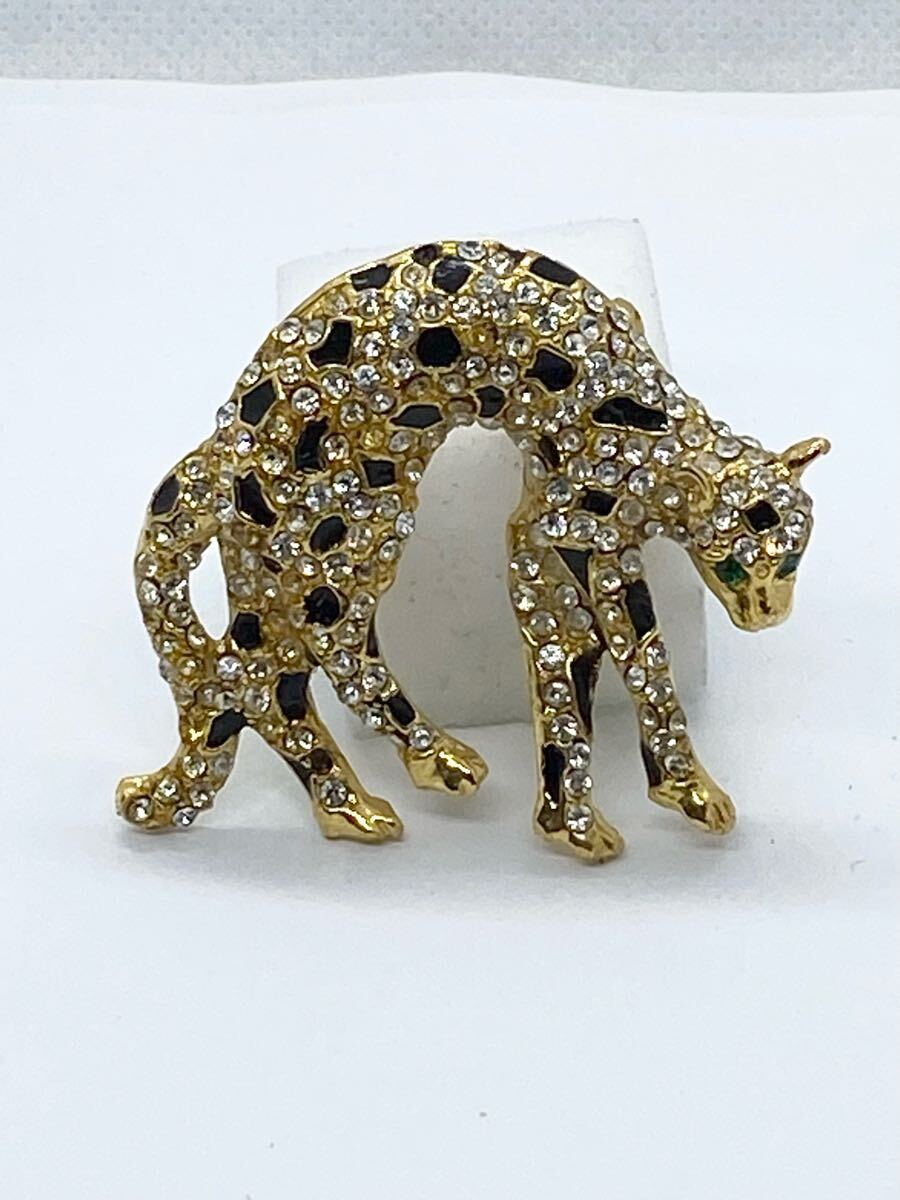 - アクセサリー ブローチ 豹 レオパード ラインストーン