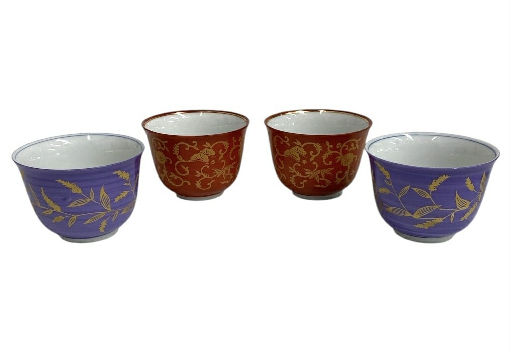 - 希少! 橘吉 たち吉 湯呑み 松竹梅 2客 紫 2客 計4客セット 25イ215