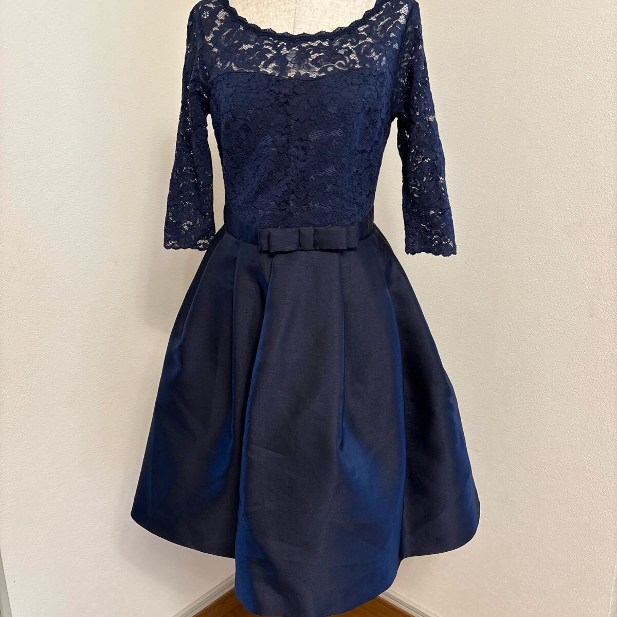 - ☆ プールヴー PourVous ネイビー レース×サテン パーティードレス Mサイズ