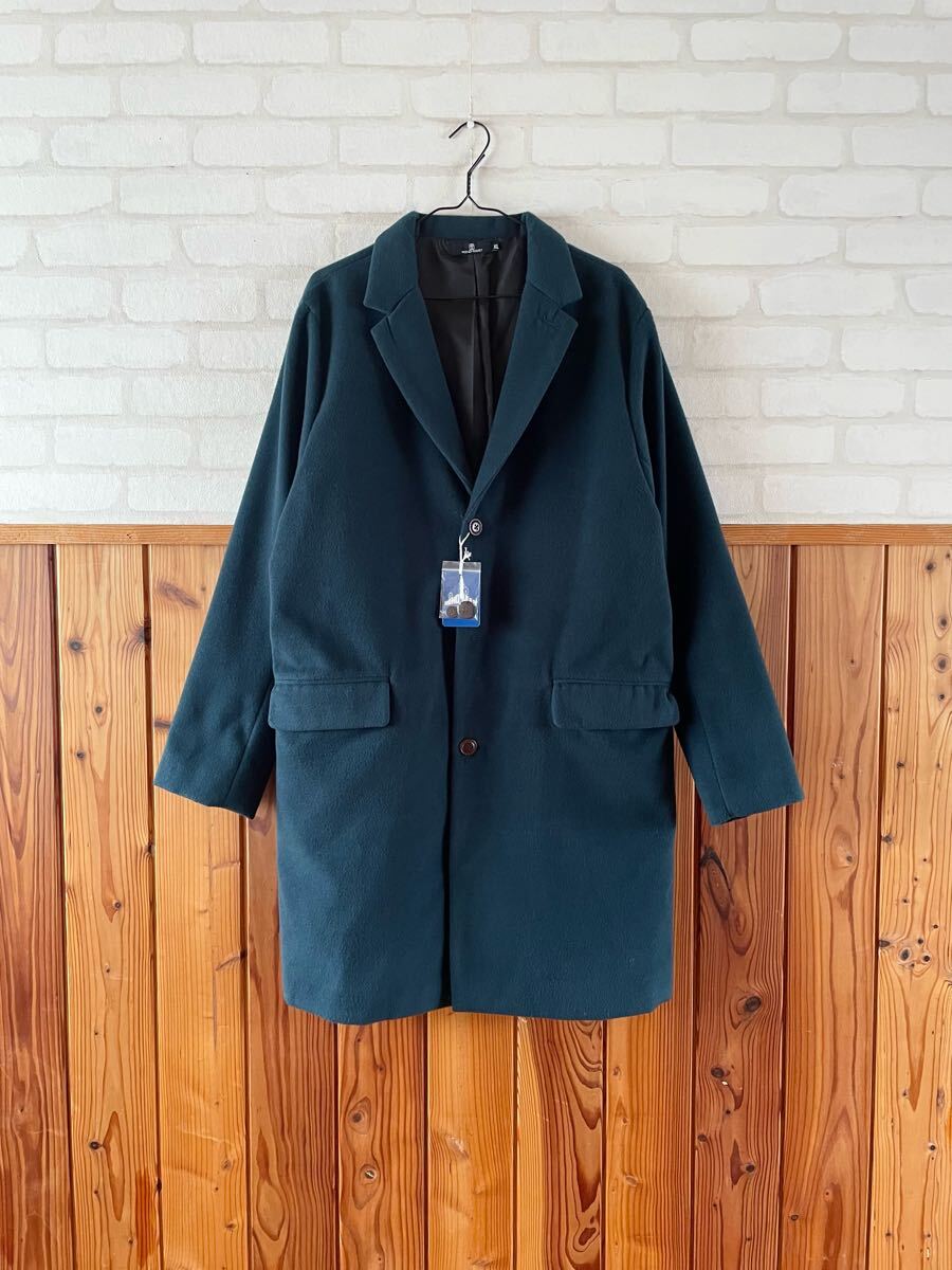 > 未使用 MONO MART メンズ チェスターコート L-XLサイズ 緑系 深緑 ブルーグリーン ロングコート モノマート 新品 coat
