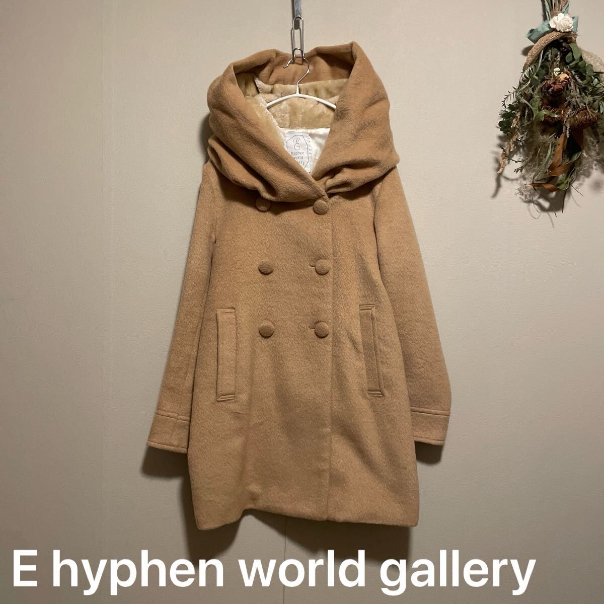 > イーハイフンワールドギャラリー ファーフードコート ショートコート ベージュ フリーサイズ 美品 ビッグフード 上着 アウター