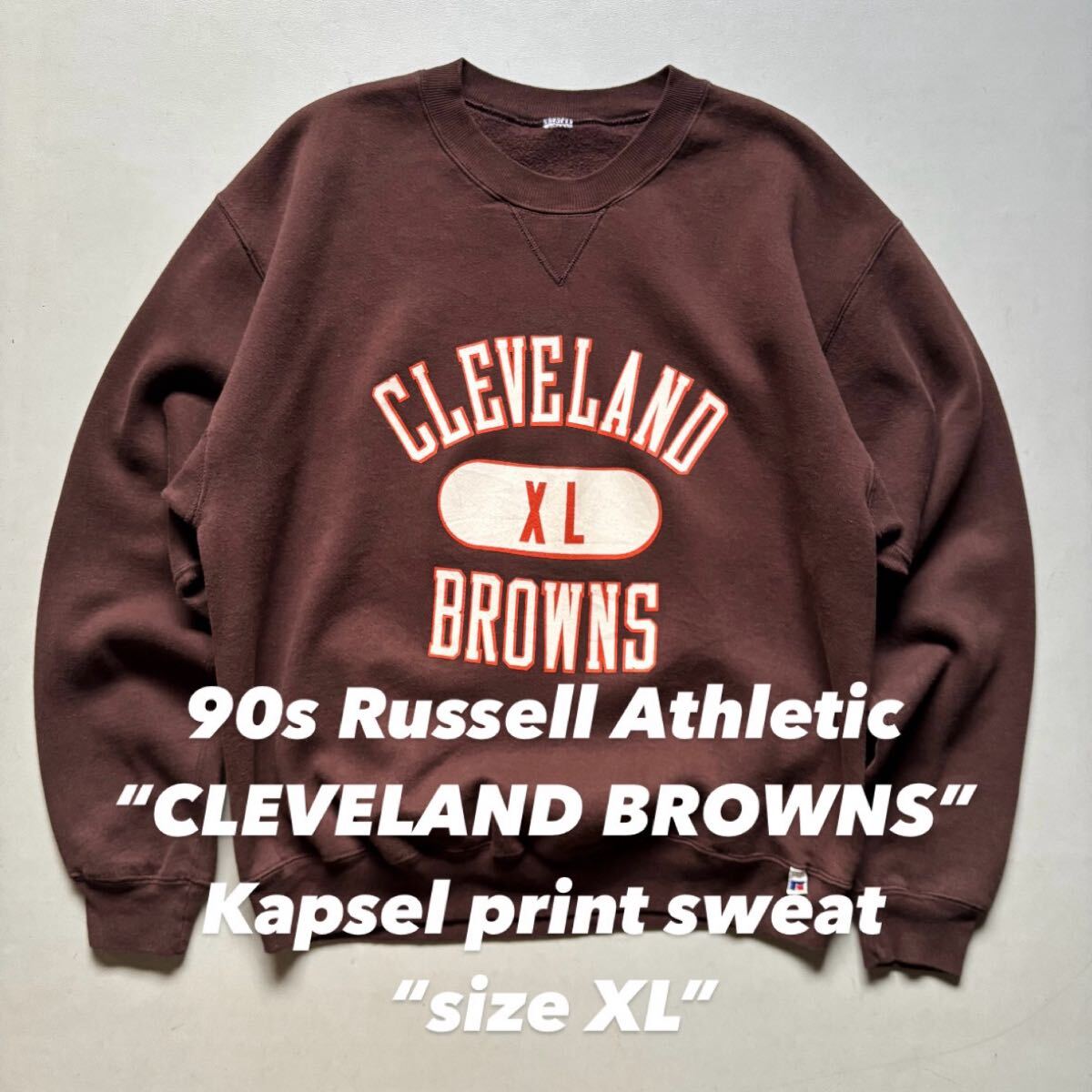 > 90s Russell CLEVELAND BROWNS Kapsel print sweat XL 90年代 ラッセル カプセルプリント 3段 スウェット トレーナー ブラウン トレーナー