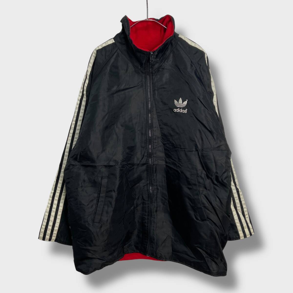 - 送料無料☆adidas☆90s☆アディダス☆リバーシブルジャケット☆トレフォイルロゴ☆ナイロン☆フリース☆ブラック☆レッド☆L☆B25M