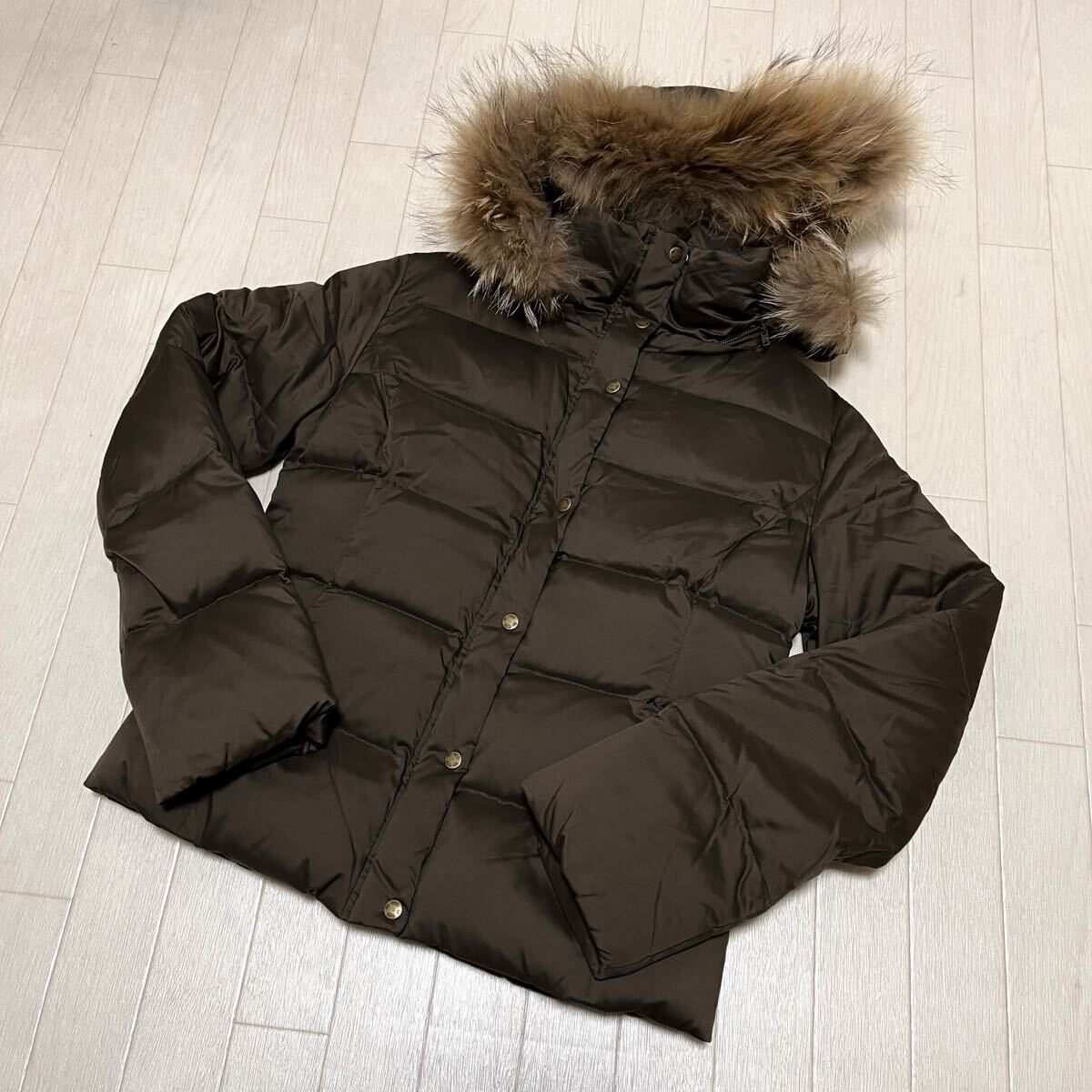 > 和656★ Le souk ルスーク ダウンジャケット ジップアップブルゾン フード脱着可能 ラクーンファー 36 ダークブラウン レディース