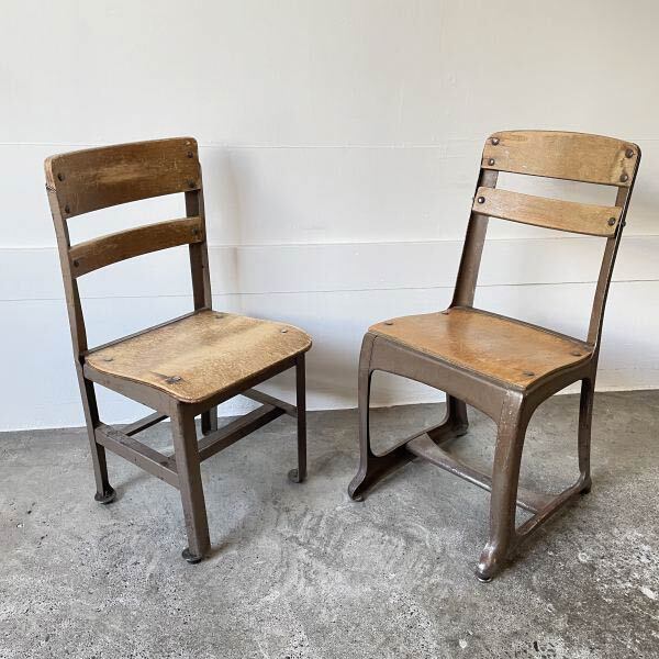 - USA製 ビンテージ スクール チェア 2脚セット 木製×スチール製 子供椅子 雑貨 店舗什器 インダストリアル インテリア D128-71-4218ZV