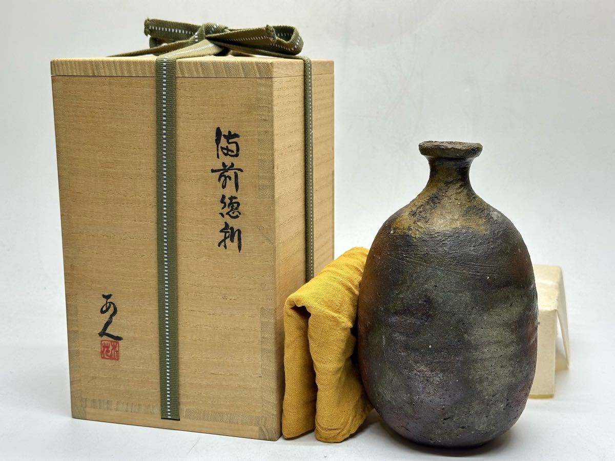 - 安倍安人 備前 窯変 大徳利 共箱 花入④