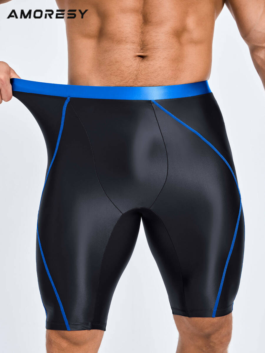 > AMORESY Spartacusシリーズ 膝丈 スポーツショーツ メンズ カジュアル フィットネス パンツ サイクリング 516 ブラック&ブルー