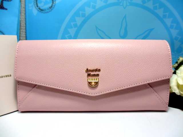 - 送料無料 66%引 サマンサタバサ パール モチーフ ロゴ入 牛革 レター型 かぶせ 長財布 ピンク 新品 証明書付 プレゼント 開運 金運 春財布