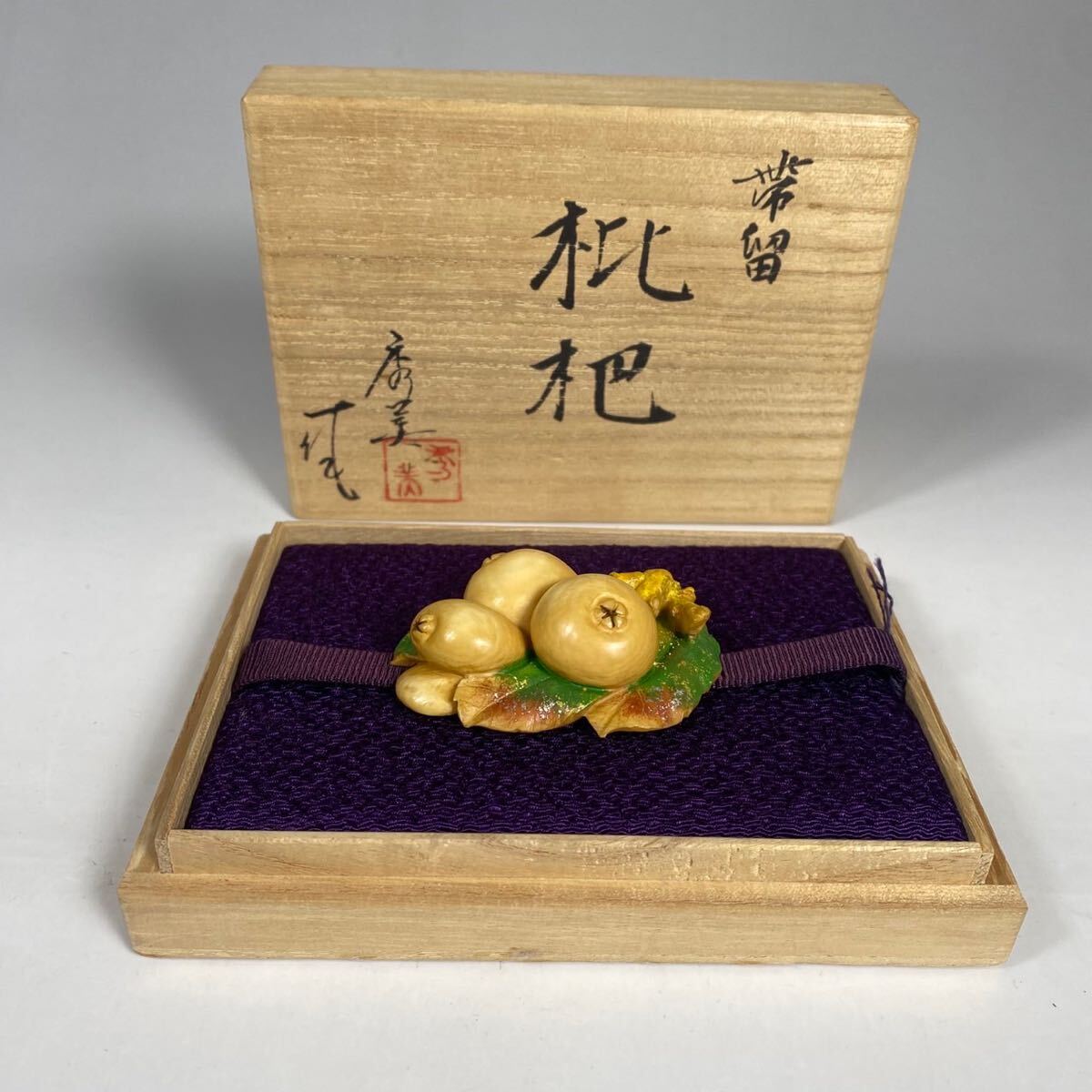 - 荒巻秀美 作 『枇杷帯留』 共箱 帯留め 和装小物 アクセサリー 着物 帯留 作家物 美術品 びわ 彩色