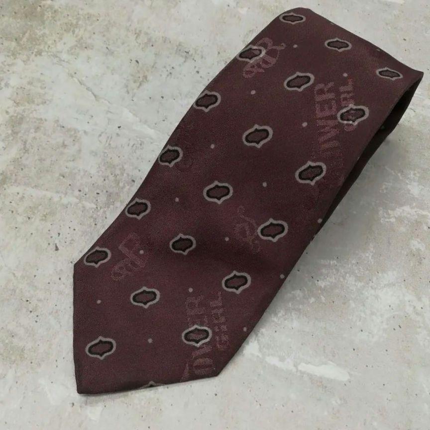 - セリーヌ ネクタイ プリント柄 小紋 織柄 えんじ色 絹100% 【n051】