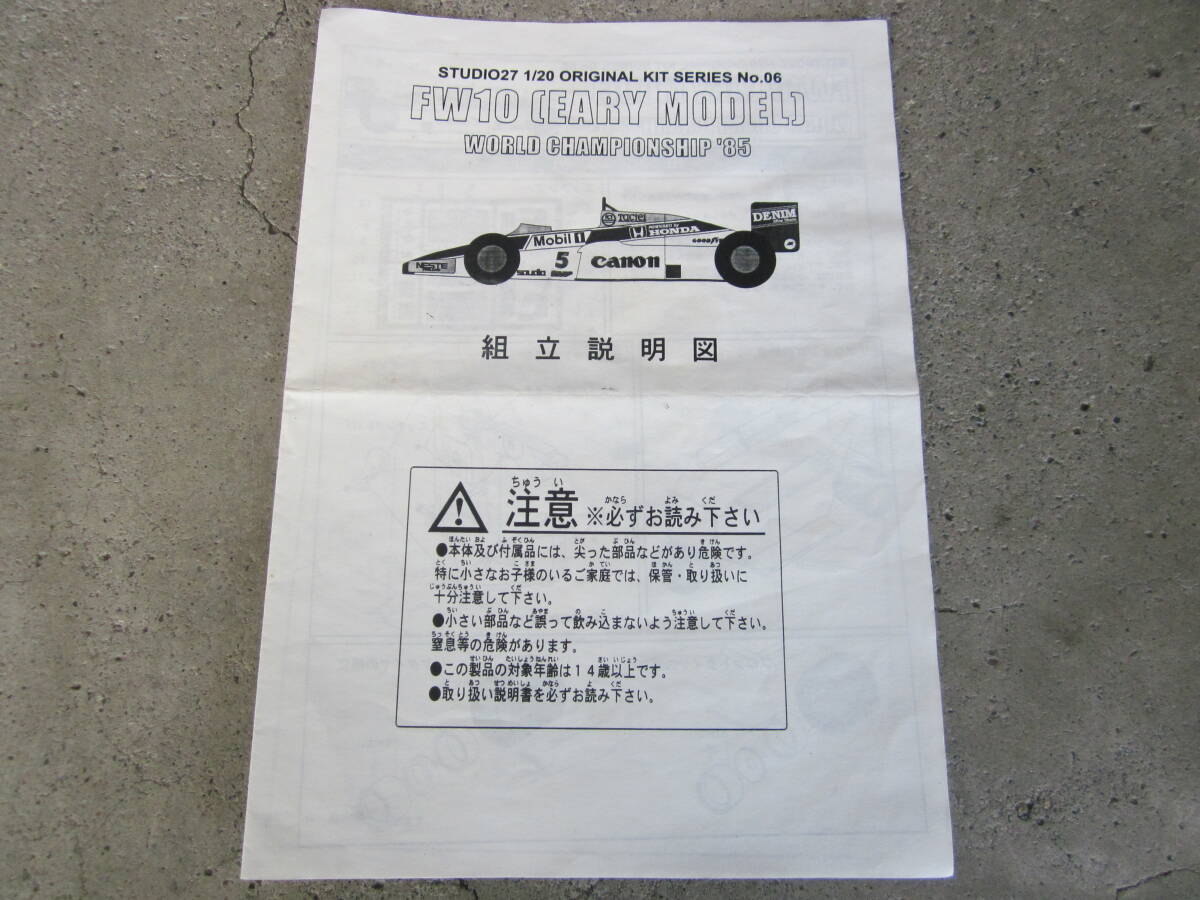 - スタジオ27★1/20 ウィリアムズ FW10 ホンダ EARY MODEL 1985★組立説明書