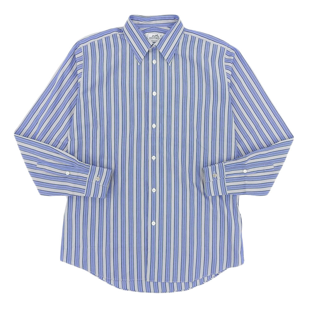 - 美品 HERMES エルメス 袖セリエボタン ストライプシャツ トップス メンズ コットン ブルー グレー 40