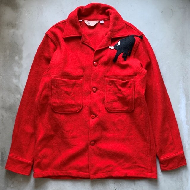 > 【L】60s BSA ボーイスカウト 牛 ワッペン付き ウールシャツジャケット レッド 赤■ビンテージ オールド レトロ アメリカ古着