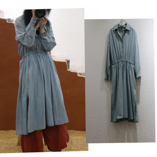 - jm ワンピース カーディガン 羽織物 デニム生地 ジーンズ 高質 大人可愛柔らかな素材 楽な着心地 軽やか 綿100% ゆったり ダル タフ