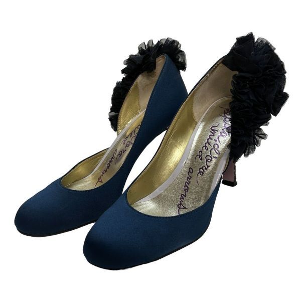 > E845 UNITED ARROWS ユナイテッドアローズ レディース パンプス 21.5cm ネイビー 布地 フラワーモチーフ 日本製
