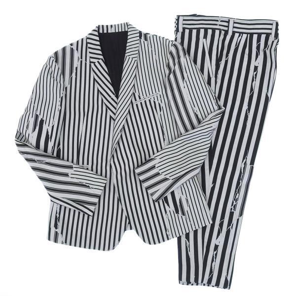 > 美品 HAIDER ACKERMANN ハイダーアッカーマン ストライプ セットアップ スーツ メンズ シルク混 ホワイト×ブラック 52 ランウェイ