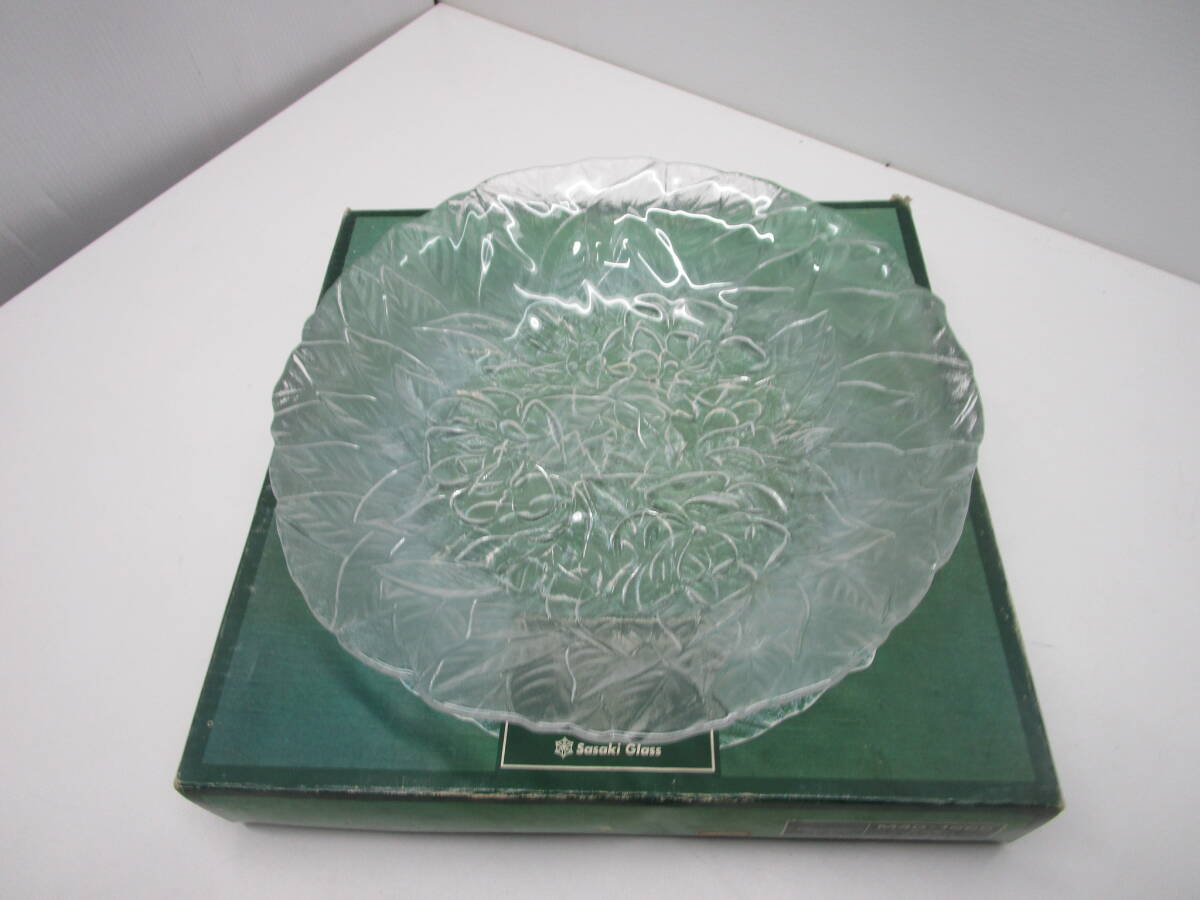 - O754★佐々木ガラス 大皿 硝子皿 フルーツ皿 栞付 紙箱 ガラス食器★未使用品
