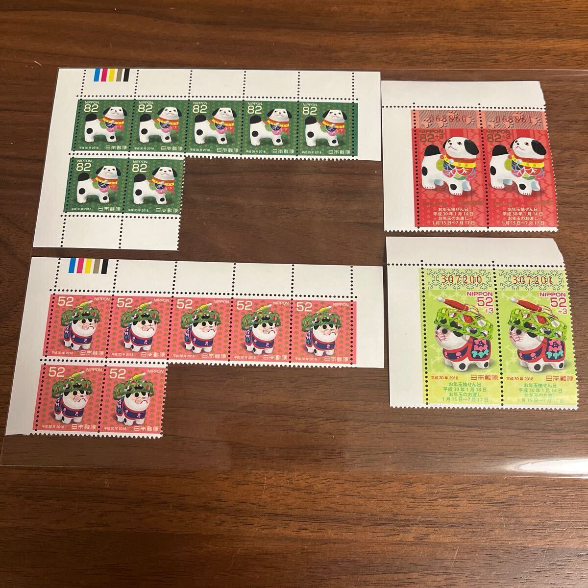 - 切手 年賀切手 平成30年 2018年 4種 10枚 額面1,206円 お年玉 くじ付き カラーマーク付き