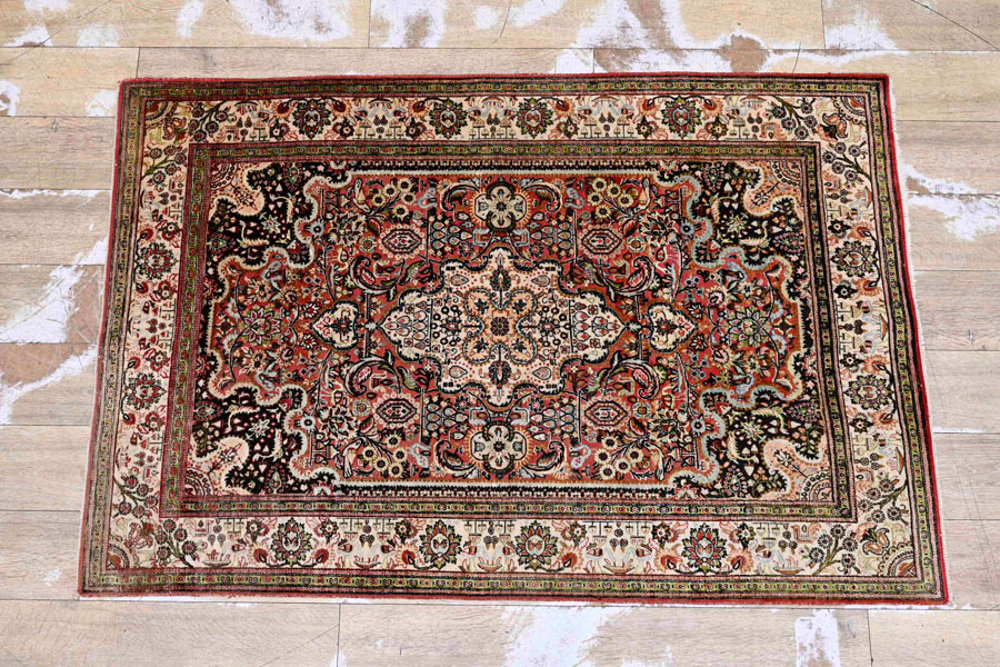 > HZ20 上級品 シルク(絹)100% 手織り ハンドメイド ペルシャ絨毯 玄関マット センターラグ キッチンマット 応接 廊下