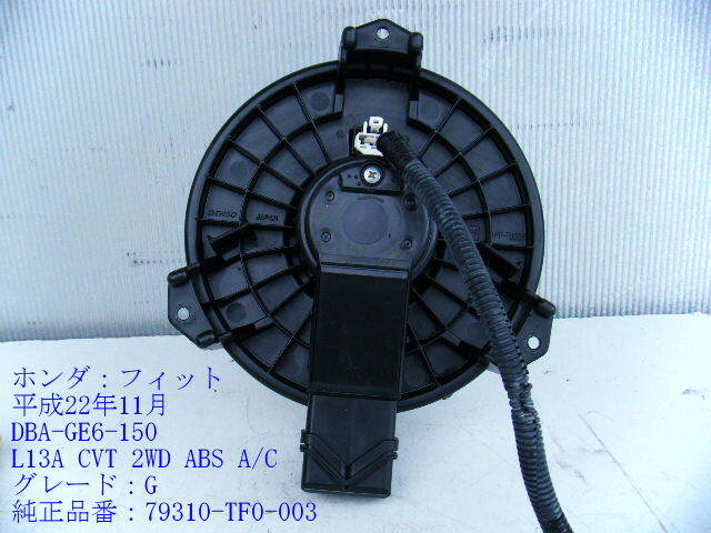 - ◆GE6 ホンダ フィット ブロアモーター ヒーターモーター ファンモーター 室内 79310-TF0-003 純正 [12470]