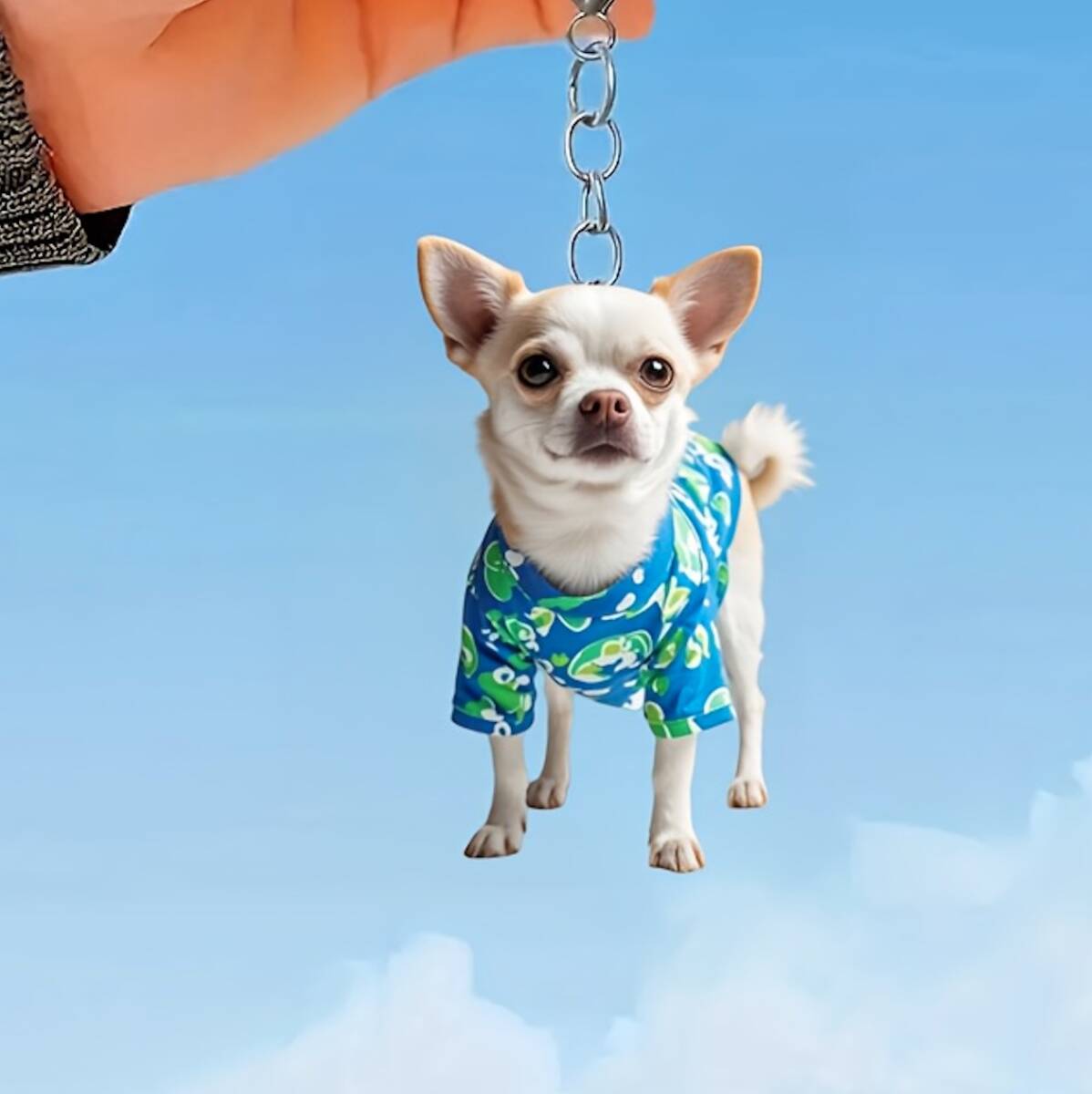 - キーホルダー おもしろ 白チワワ 子犬 平面 2D アクリル 5cm 小さめ アロハシャツ いぬ おしゃれ かわいい イヌ インテリア t4989
