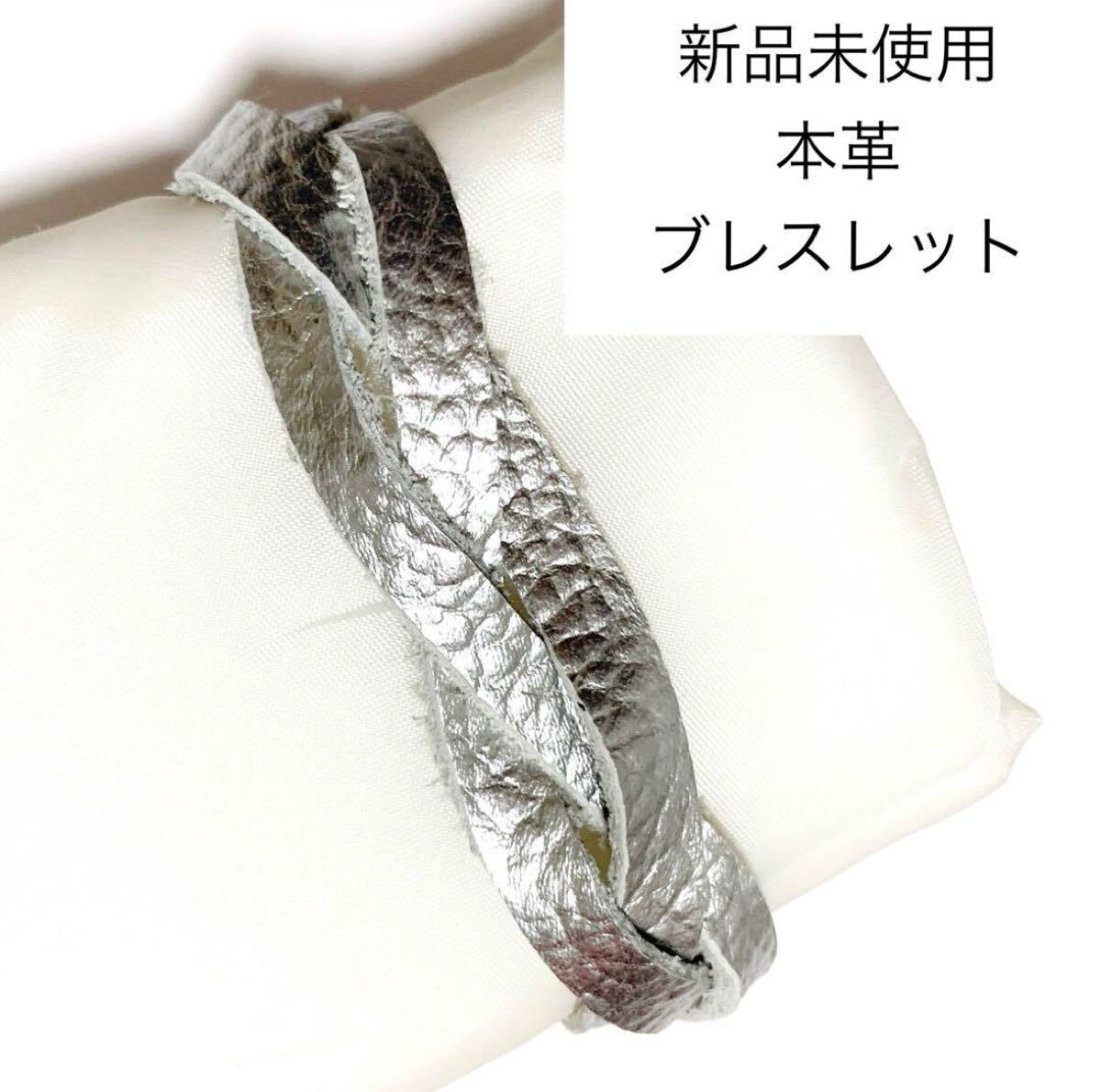 > 新品未使用 本革メッシュ編みブレスレット シルバー 銀 レザー小物 レザークラフト アクセサリー バングル 革小物 レザーアクセサリー