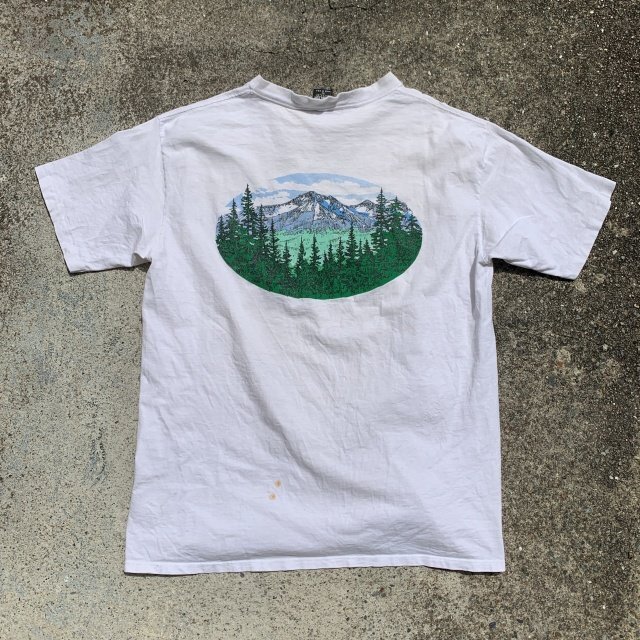> 【XL】90s USA製 H.L.MILLER プリントTシャツ 白■ビンテージ オールド アメリカ古着 オールコットン シングルステッチ 山