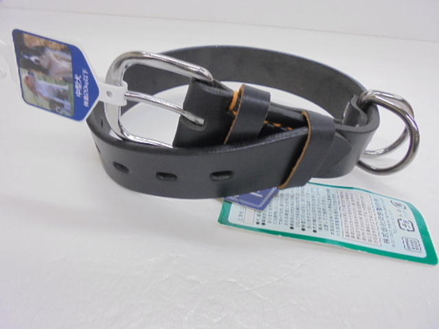 > 【KCM】PTO-49★未使用・保管品★岡野製作所 ドイツナメシ平首輪 #30 黒 牛皮革製(日本製) 中型犬用(体重20kg以下) 400~500mm