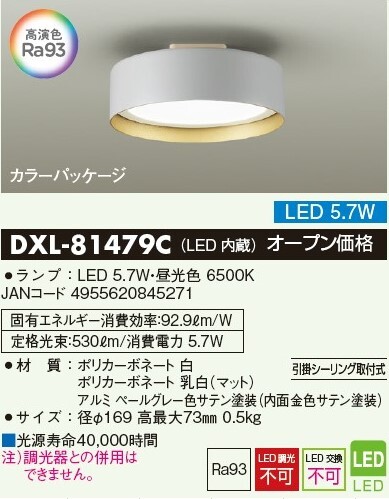 > DAIKO DXL-81479C 導光板小型シーリング ペールグレー 昼光色 JAN4955620845271 EC zaiko