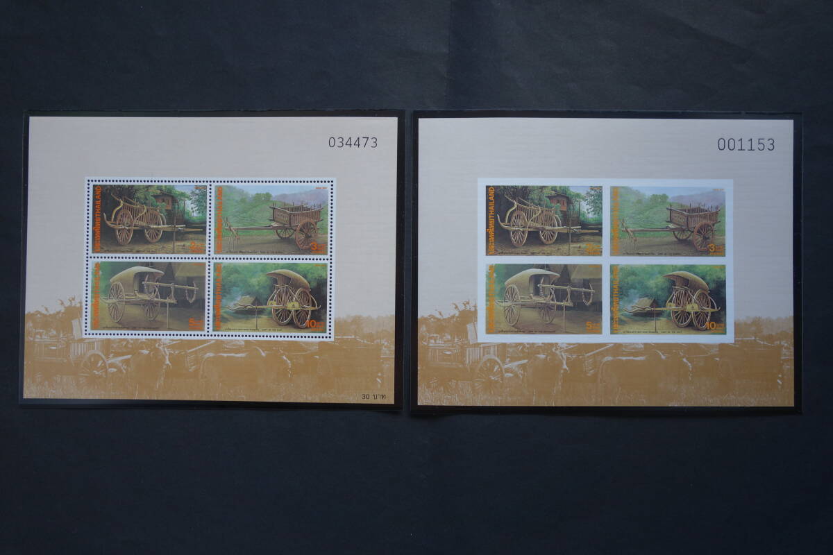- 外国切手: タイ切手 「文化遺産保護の日 1992」(荷車)目打有と目打無 小型シート 2種 未使用