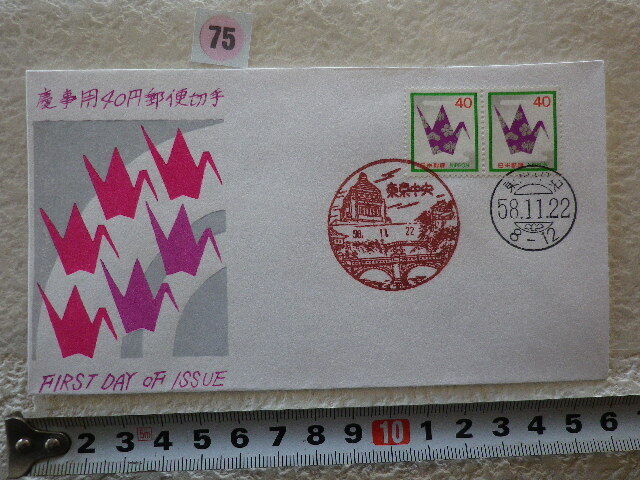 - FDC 慶事 折鶴40円 1983年 2貼2消 説明書有 松屋●75●同梱大歓迎