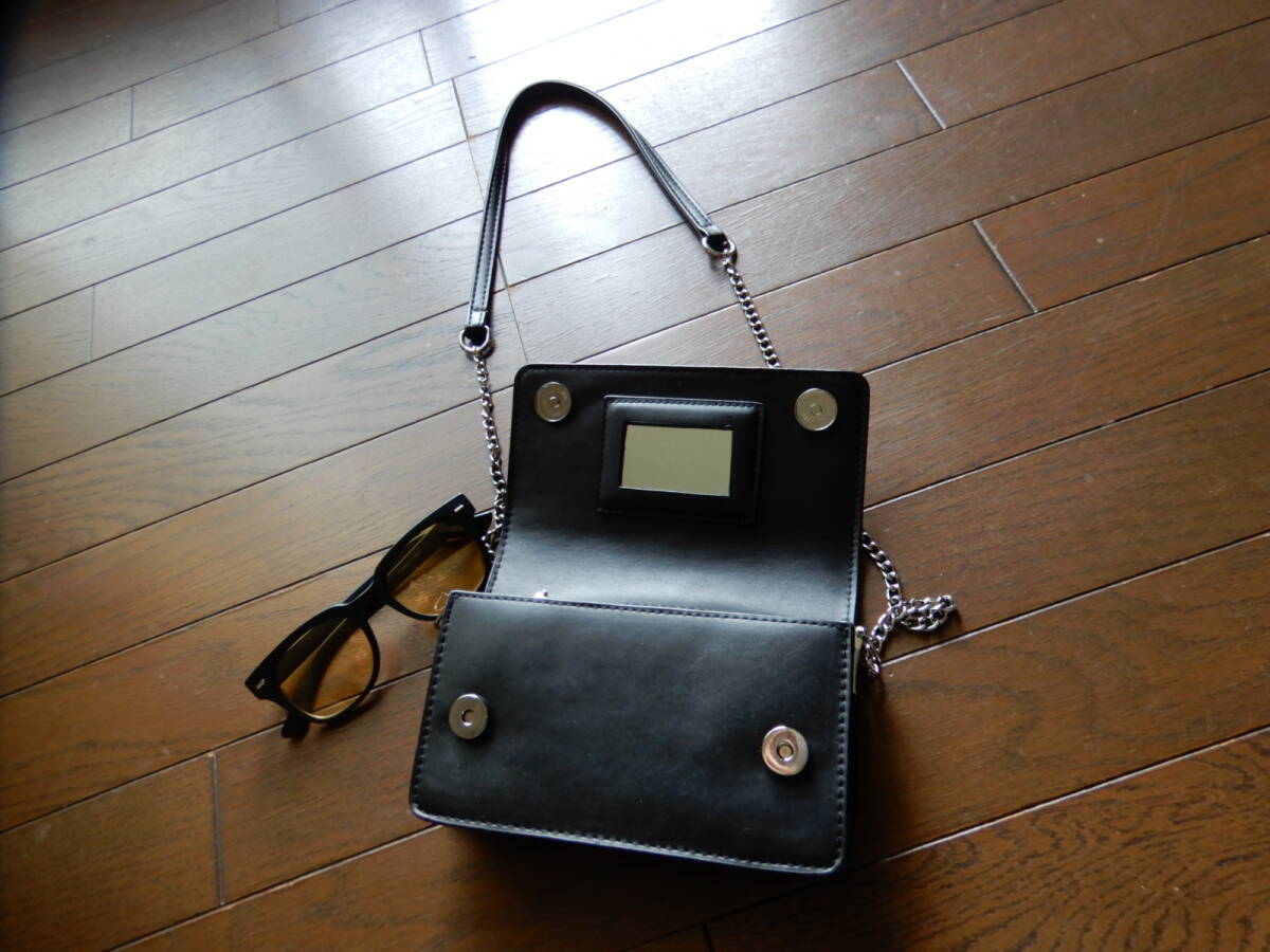 - 【FASHION&BAGS】鏡の付いた2way小さめ黒チェーンバッグ 取り外し可能 お財布代わりにも 肩掛け・斜めがけ