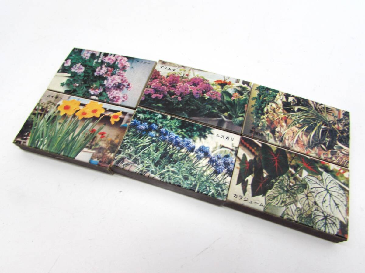 - 未使用品 レトロ マッチ箱 マッチラベル 6個おまとめ 花シリーズ アジサイ ゼラニューム スイセン アイビー ヒヤシンス カラジューム S