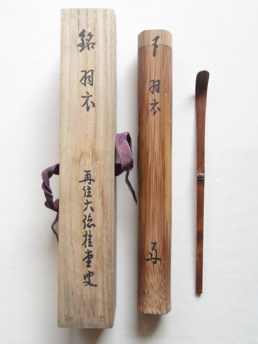 - 【即決価格】銘 羽衣 茶杓「再住大徳 桂堂」共箱付き 骨董・茶道具
