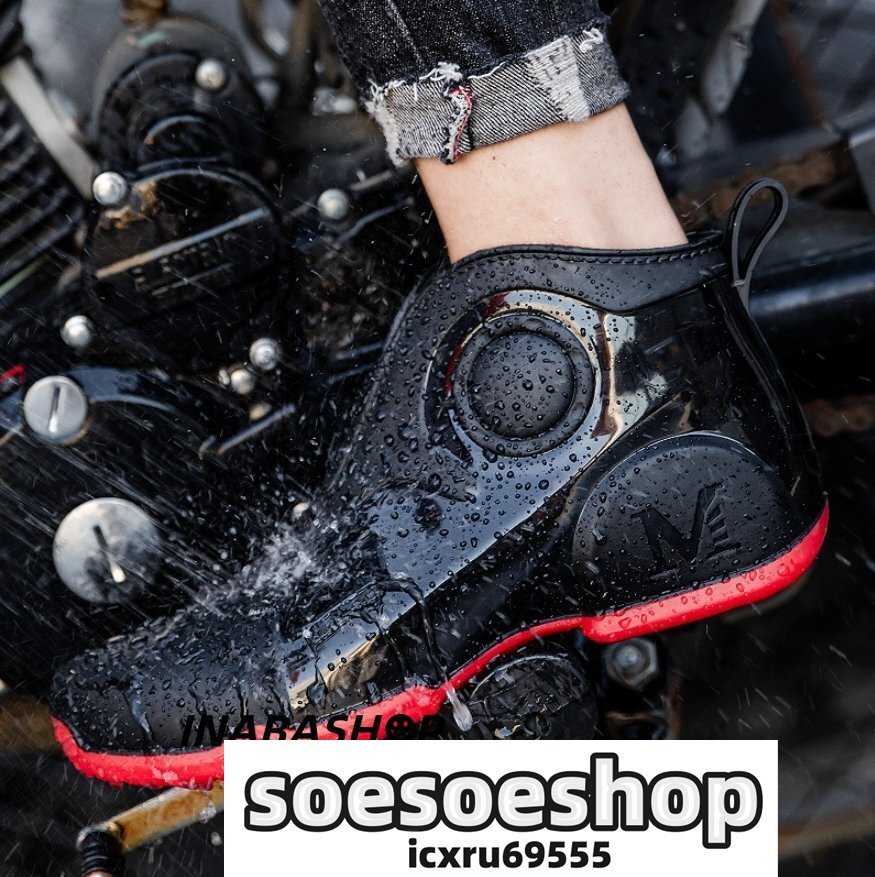 - 新品 レインシューズ ショット丈 メンズ バイクシューズ レインブーツ 完全防水 滑りにくい アウトドア サイズ 24.5cm~27cm 黒*赤