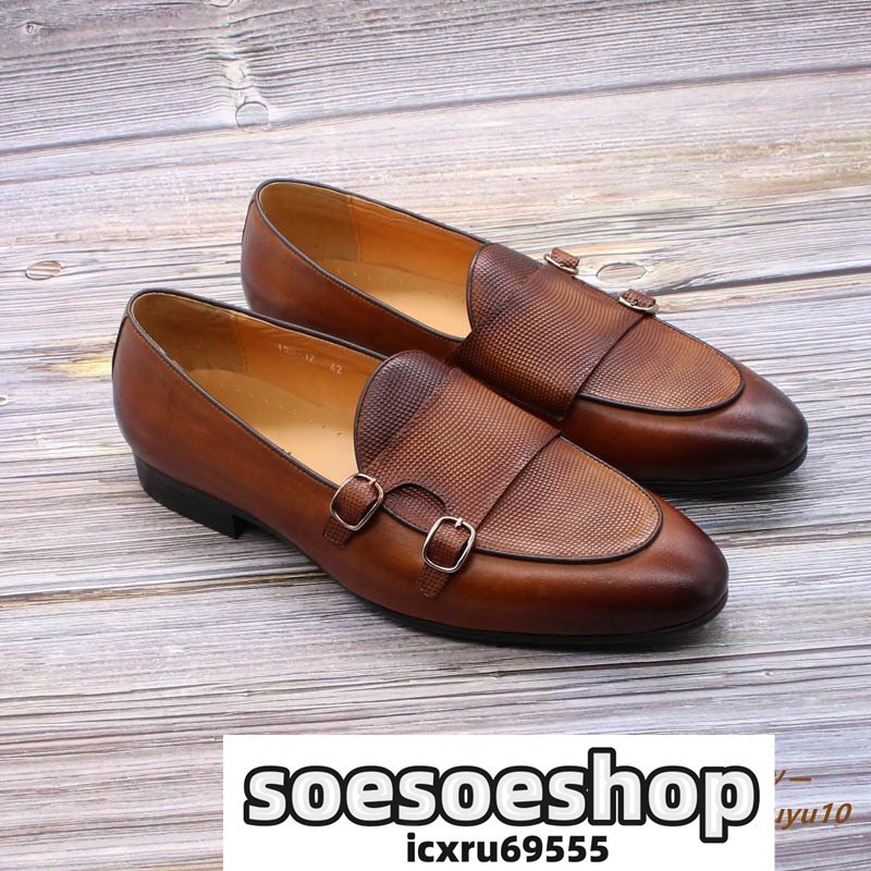> 定価8万◆ローファー スリッポン 最高級 牛革 ビジネスシューズ 手作り 本革 レザーシューズ 個性 メンズ 通勤靴 結婚式 ブラウン 25.0cm