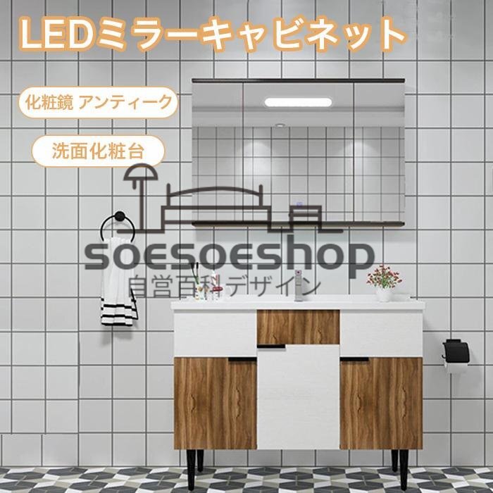 - 洗面台 洗面化粧台70cm LED ミラーキャビネット ミラー 棚 簡約 収納 化粧鏡 アンティーク 多くの選択可能