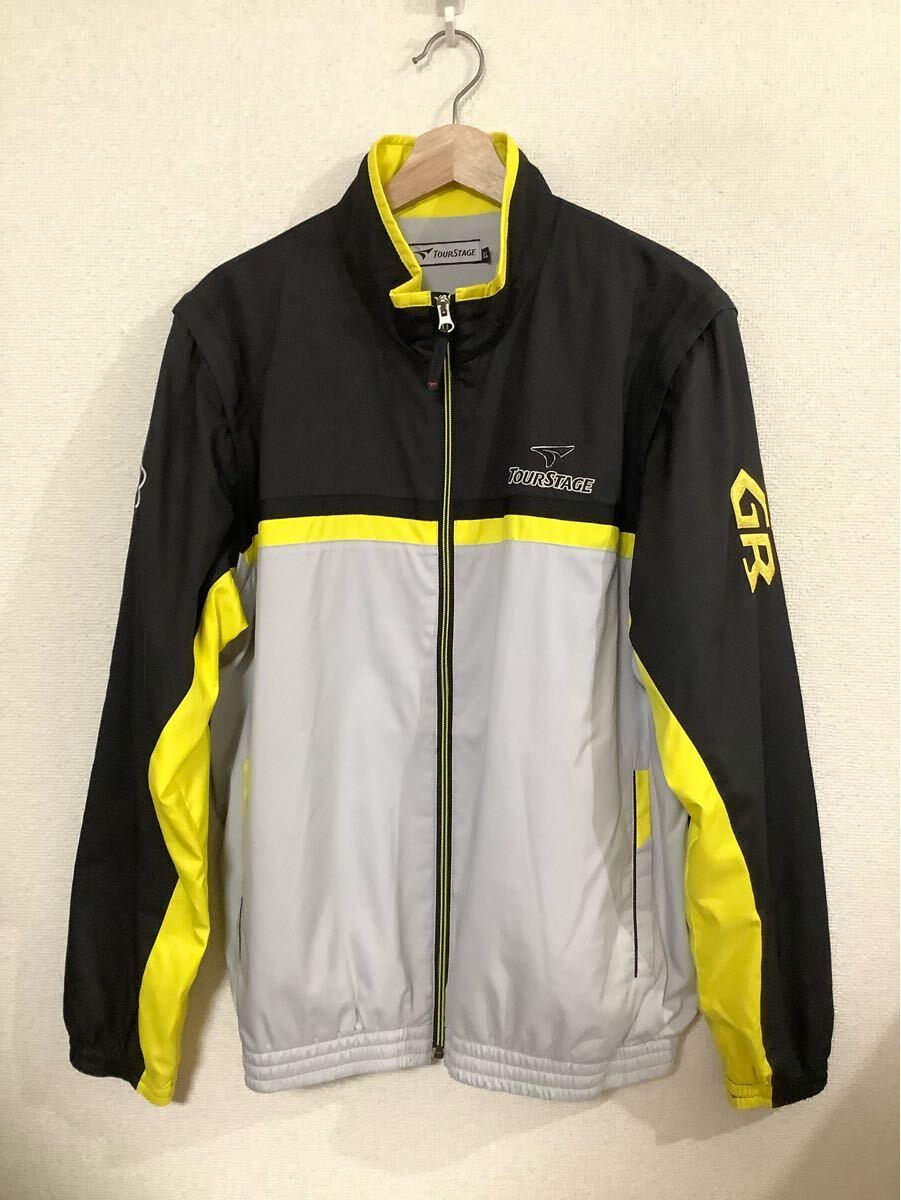 > TOUR STAGE ツアーステージ 2WAY ナイロンジャケット ゴルフウェア ブラック イエロー 紳士服 古着 L L