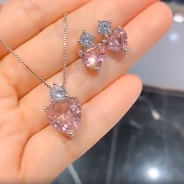 - 値下げ交渉歓迎、早期入札特典、女性のためのハート型ピンククォーツジュエリーセット、女性へのギフト_Kn