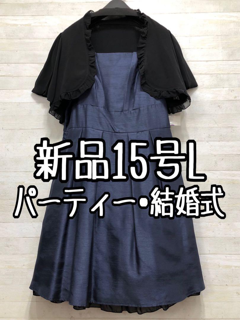 - 新品☆15号L♪紺系のシャンタン素材パーティワンピース♪黒系ボレロ付〇D561