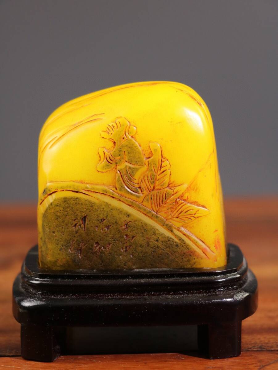- 『館蔵珍品 寿山石 田黄石 細密彫 秋遊江南紋印章』置物 賞物 貴重物品 収蔵品 中国古美術
