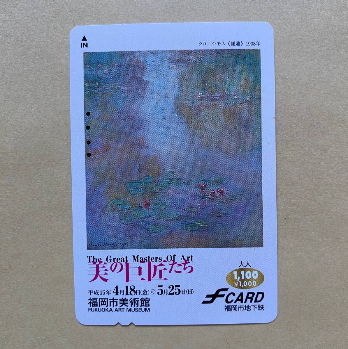 - 【使用済】 絵画fカード 福岡市地下鉄 美の巨匠たち クロード・モネ 《睡蓮》1908年