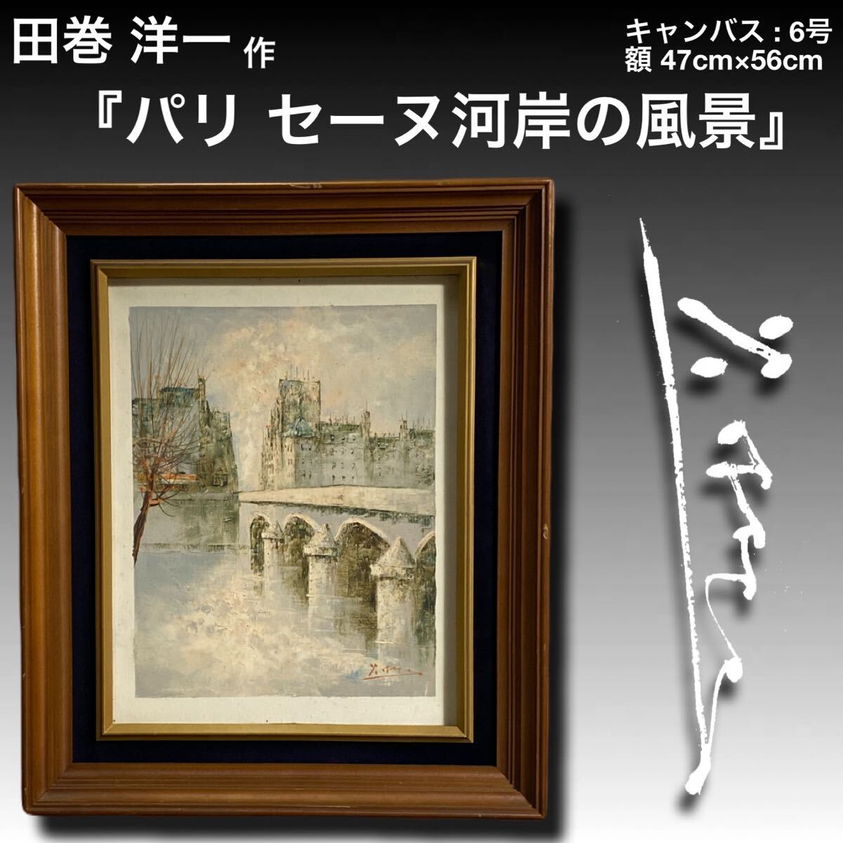 - MJ250226-6【真作保証】田巻洋一 作 『パリ セーヌ河岸の風景』キャンバス6号 油彩 1980年 風景画 額装 長野県生まれ 在仏