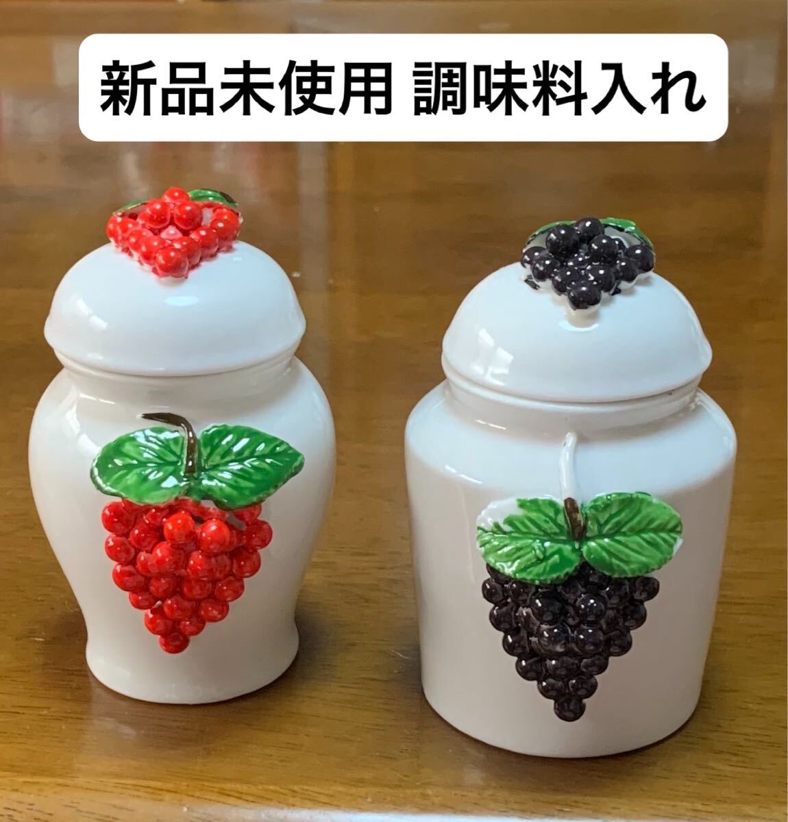 > 新品未使用 木の実モチーフ小瓶 キャニスター 陶器 新生活 白 ベリー 調味料入れ 調味料ポット シュガーポット