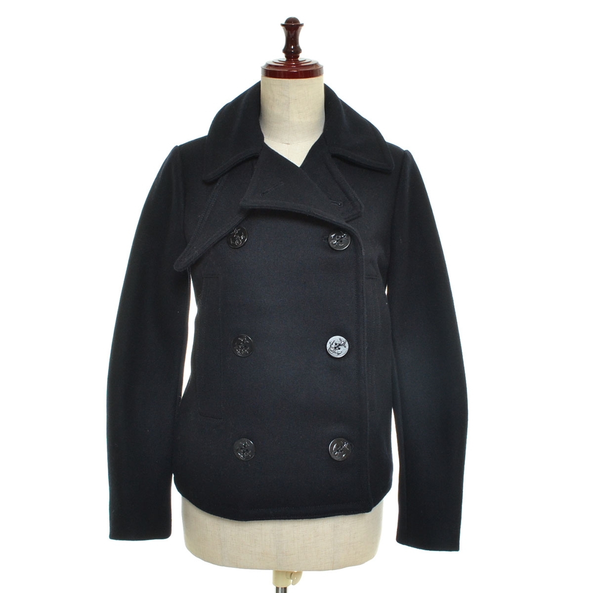- ■541046 未使用品 GAP ギャップ ●ピーコート メルトンウールPコート サイズXXS(160) レディース ダークネイビー