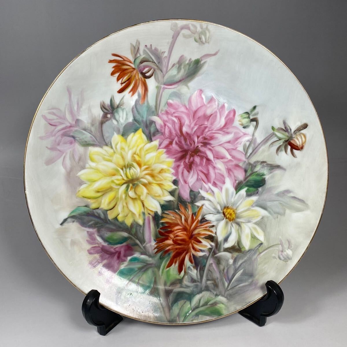 - 飾皿 大皿 飾り皿 フラワーブーケ 大皿 皿 ヴィンテージ アンティーク 作家サイン ペインター インテリア 1930年代