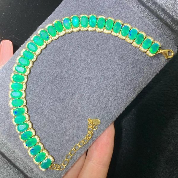 - 値下げ交渉歓迎、鑑別付き、ナチュラルグリーンオパールレディースブレスレット、4x6mm、 最初の入札者様は開始価格で購入可能_ yu