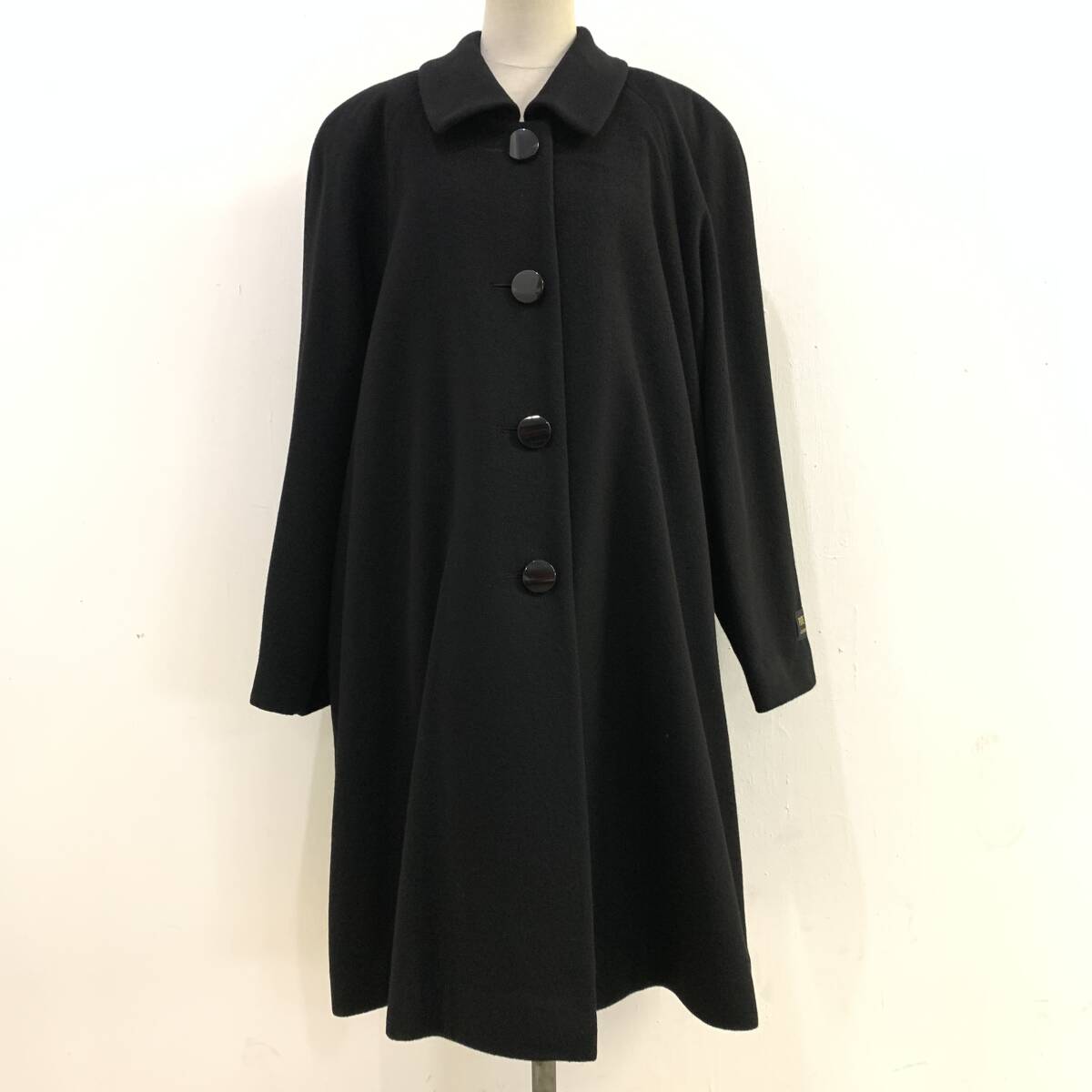 > ☆上質 繊維の宝石 UNKNOWN カシミヤ100% CASHMERE ステンカラーコート バルマカーンコート サイズ11 ブラック 古着【送料一律/同梱可能】K